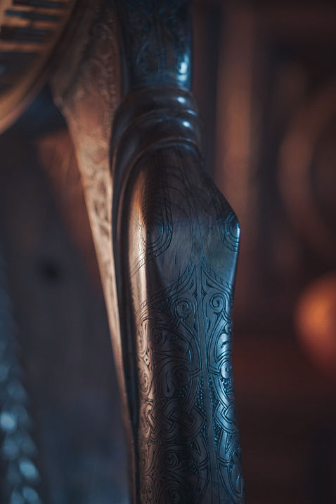 Selon la tradition, nos harpes peuvent être décorées par notre artiste pyrograveur.